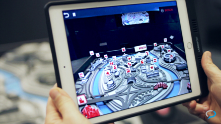 A miniature landscape is located at the heart of the Experience Center, which interactively displays all sectors of the Bosch product landscape via a virtual augmented application. For this purpose, we integrated the third-party application “MagicLensApp” into the Crestron media control system.